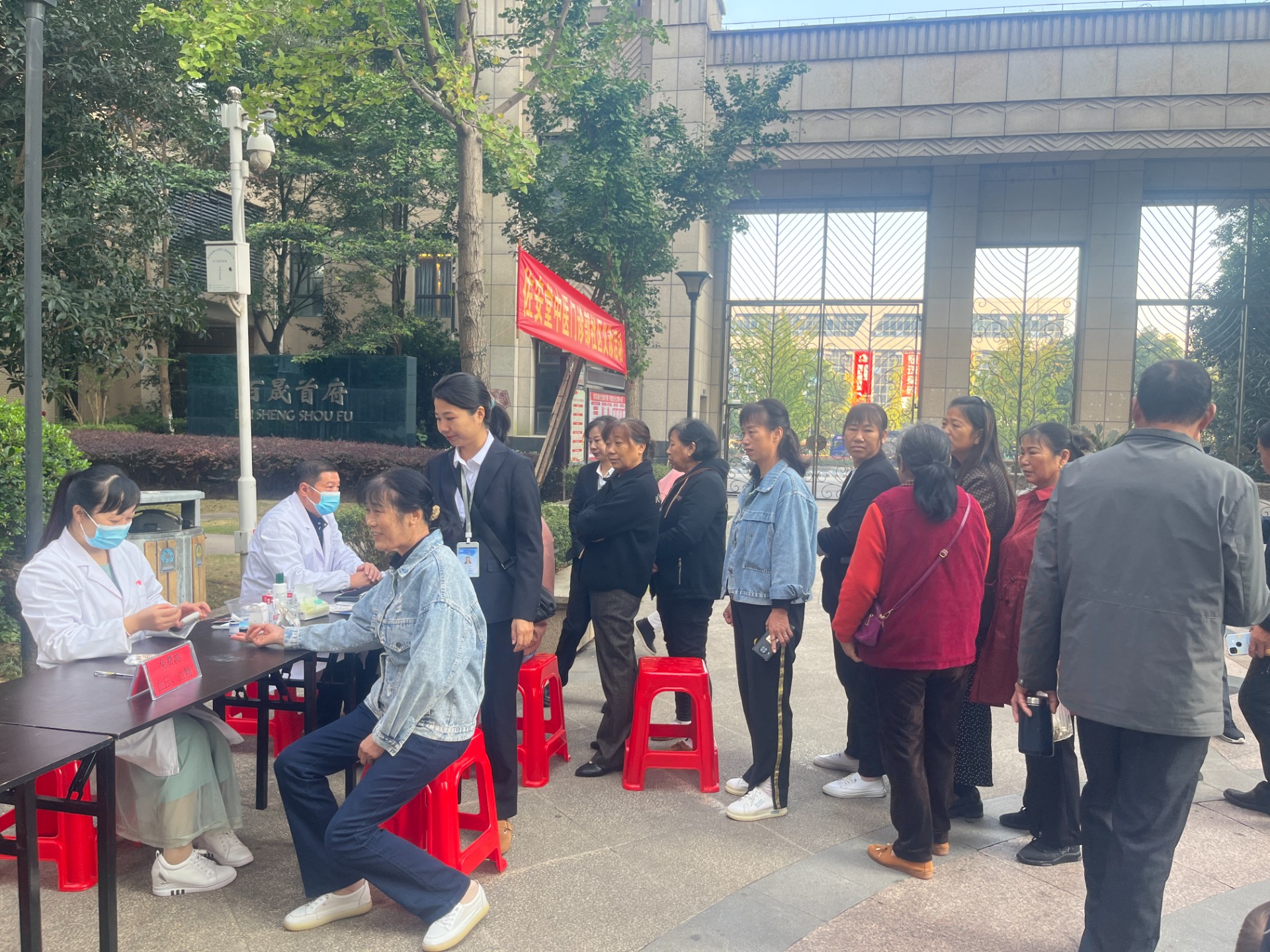 在活動現(xiàn)場,物業(yè)和醫(yī)護人員分工合作,客服部張玲玲主管帶領部門人員正確引導業(yè)主老人們選擇合適的檢查項目列隊,醫(yī)護人員為老人們免費測血壓、血糖、頸椎保健等服務。醫(yī)生們結合老人的身體情況提出相應的醫(yī)療指導與意見,并對老人們的日常保健和科學用藥等進行指導,幫助居民更好地掌握基本健康知識,增強居民的健康意識和疾病預防知識。其間,物業(yè)還特意給老人每人派發(fā)一份金絲菊花茶小禮品和發(fā)到家超市38減5元禮品。